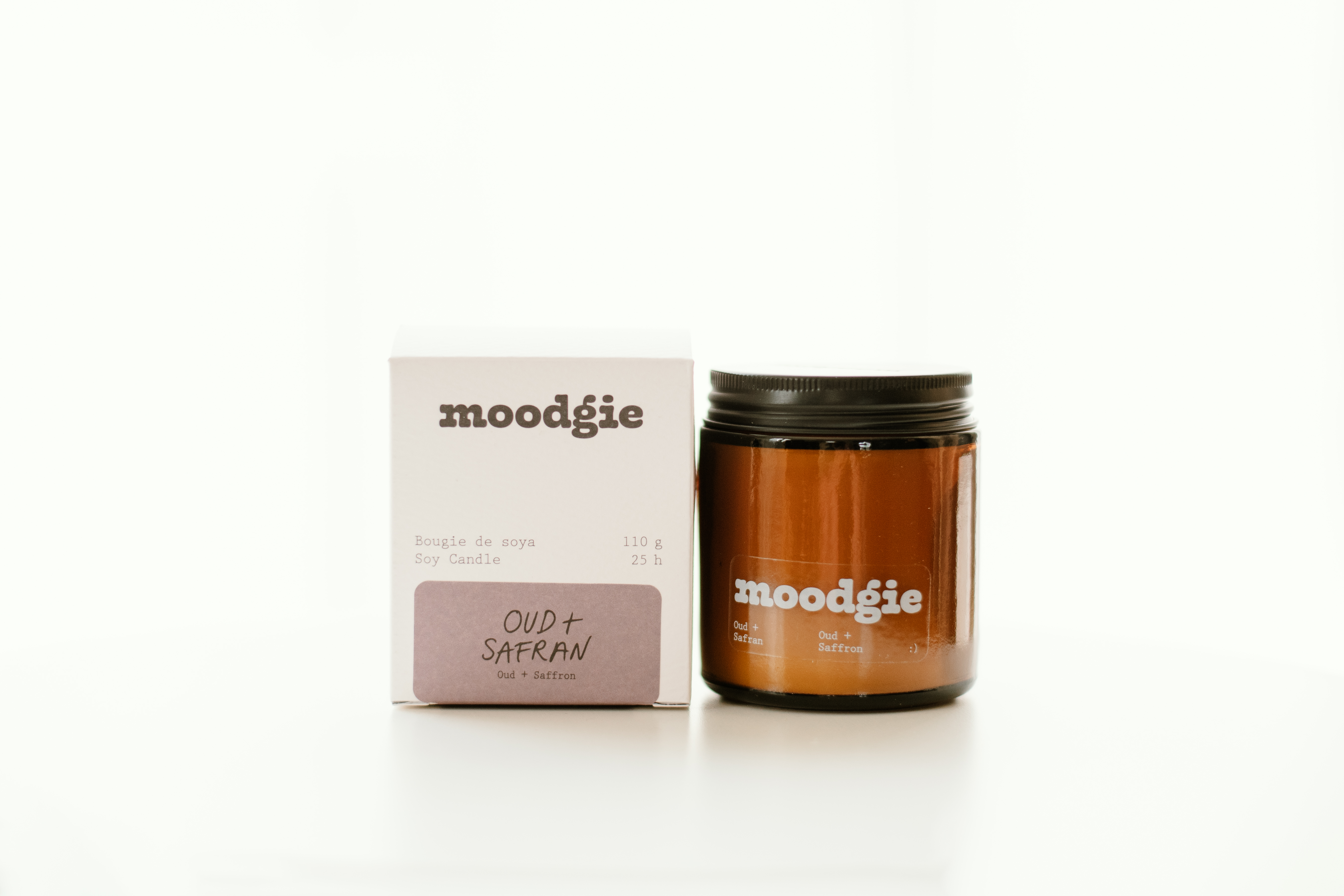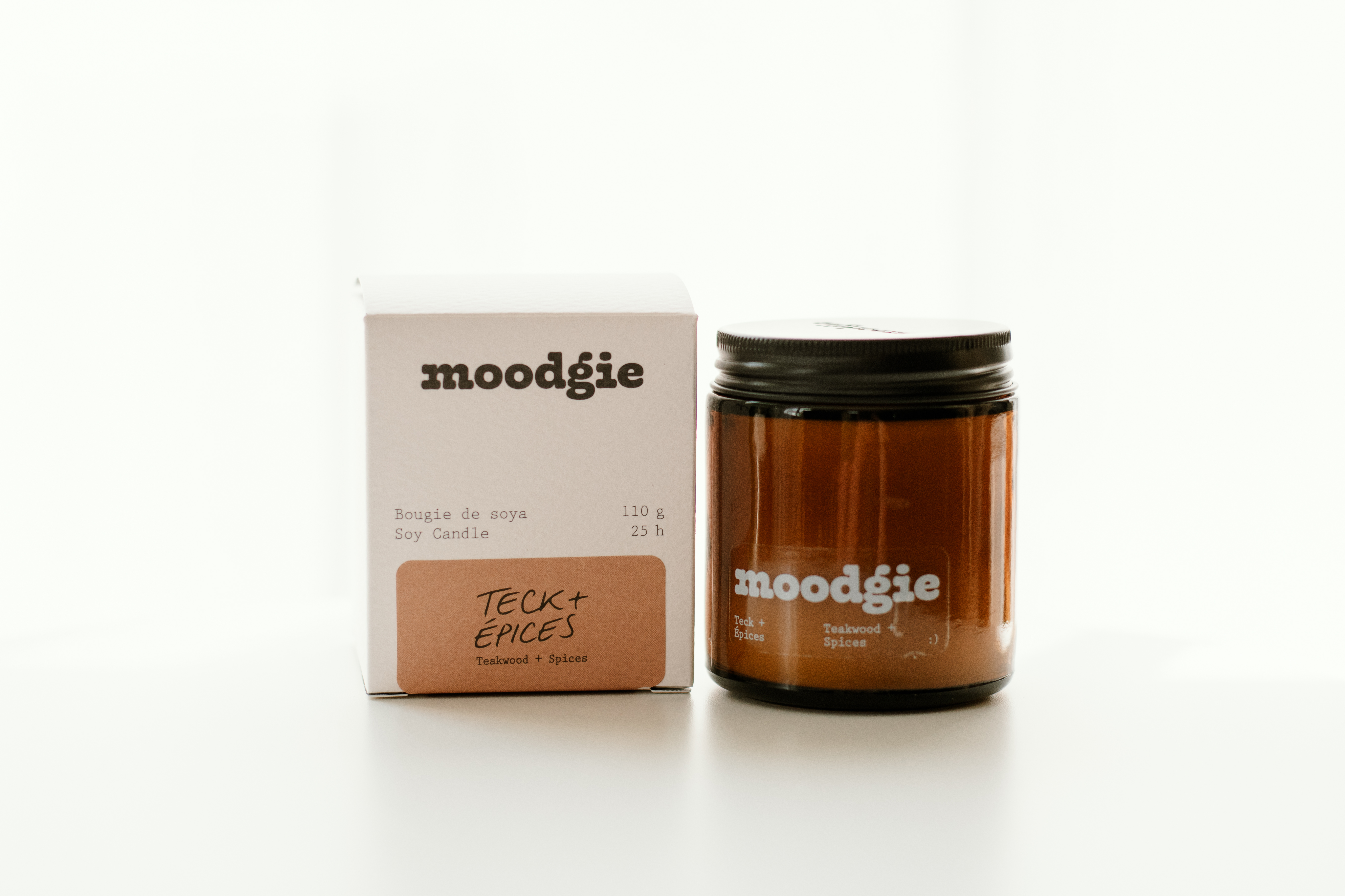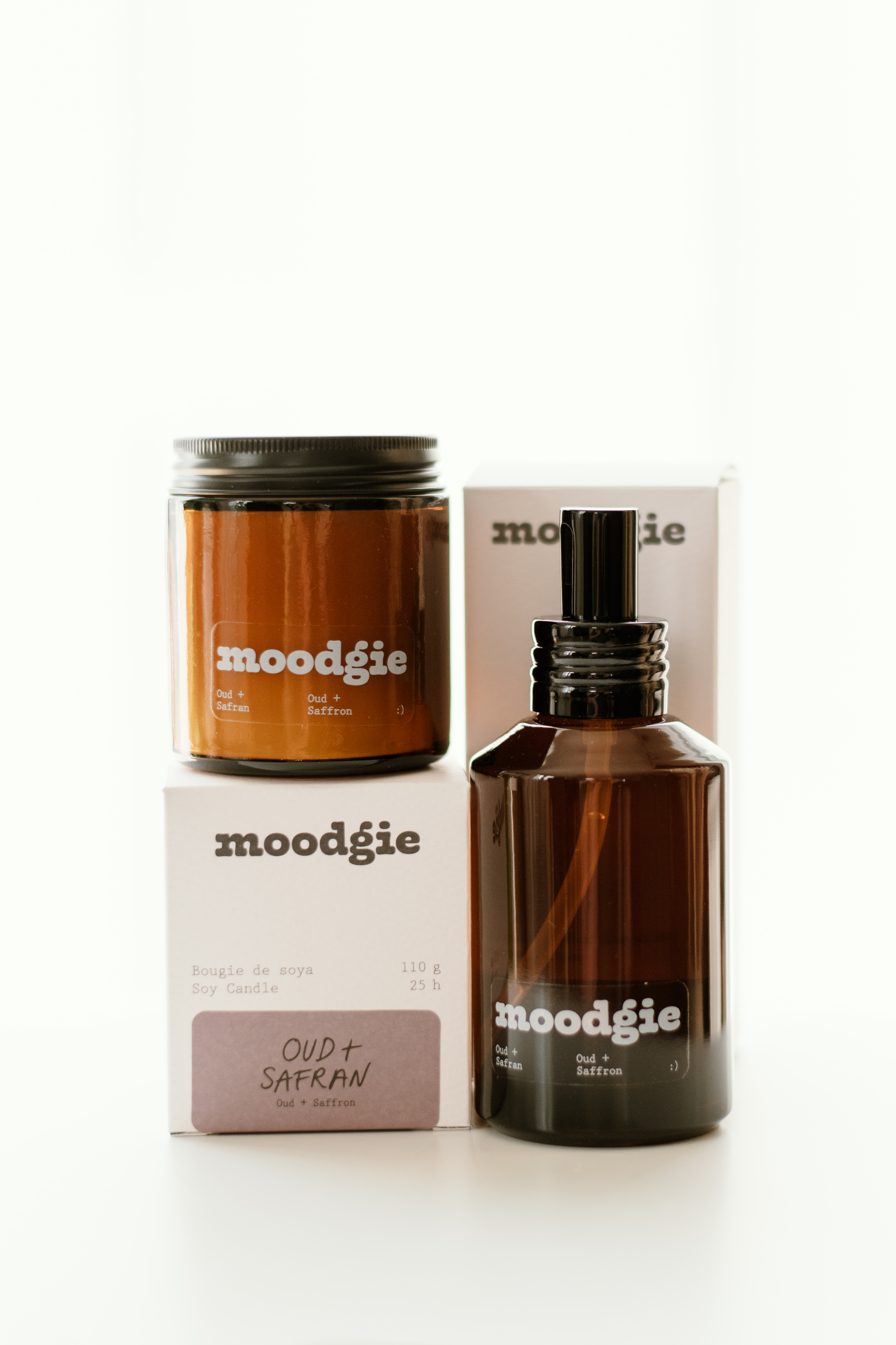 Bougie de soya 110 g et parfum d'intérieur 120 ml de la compagnie moodgie, fait à Montréal