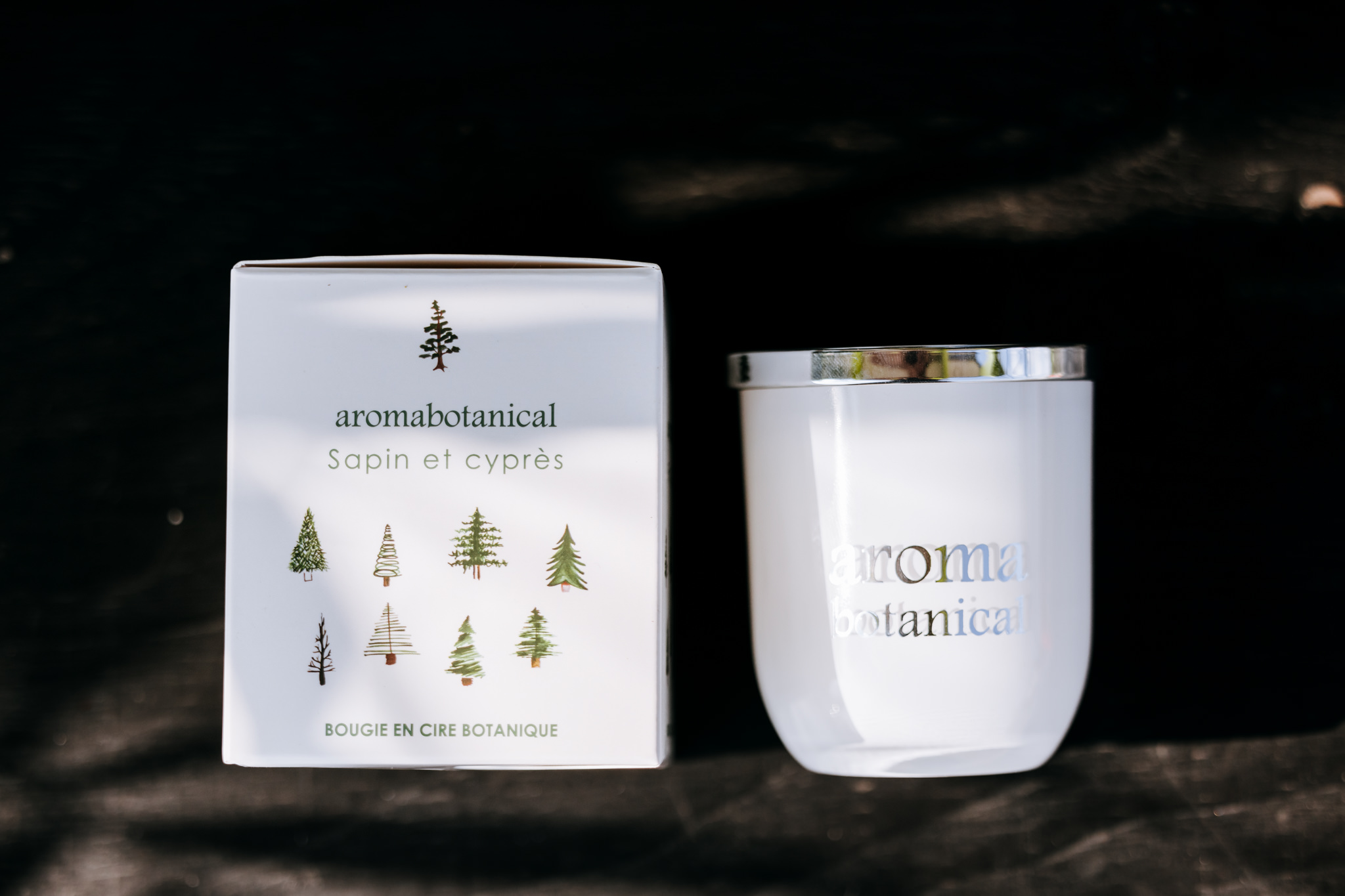 Chandelle en Cire botanique naturelle aux fragrances de Sapins, Cyprès et Cèdres.