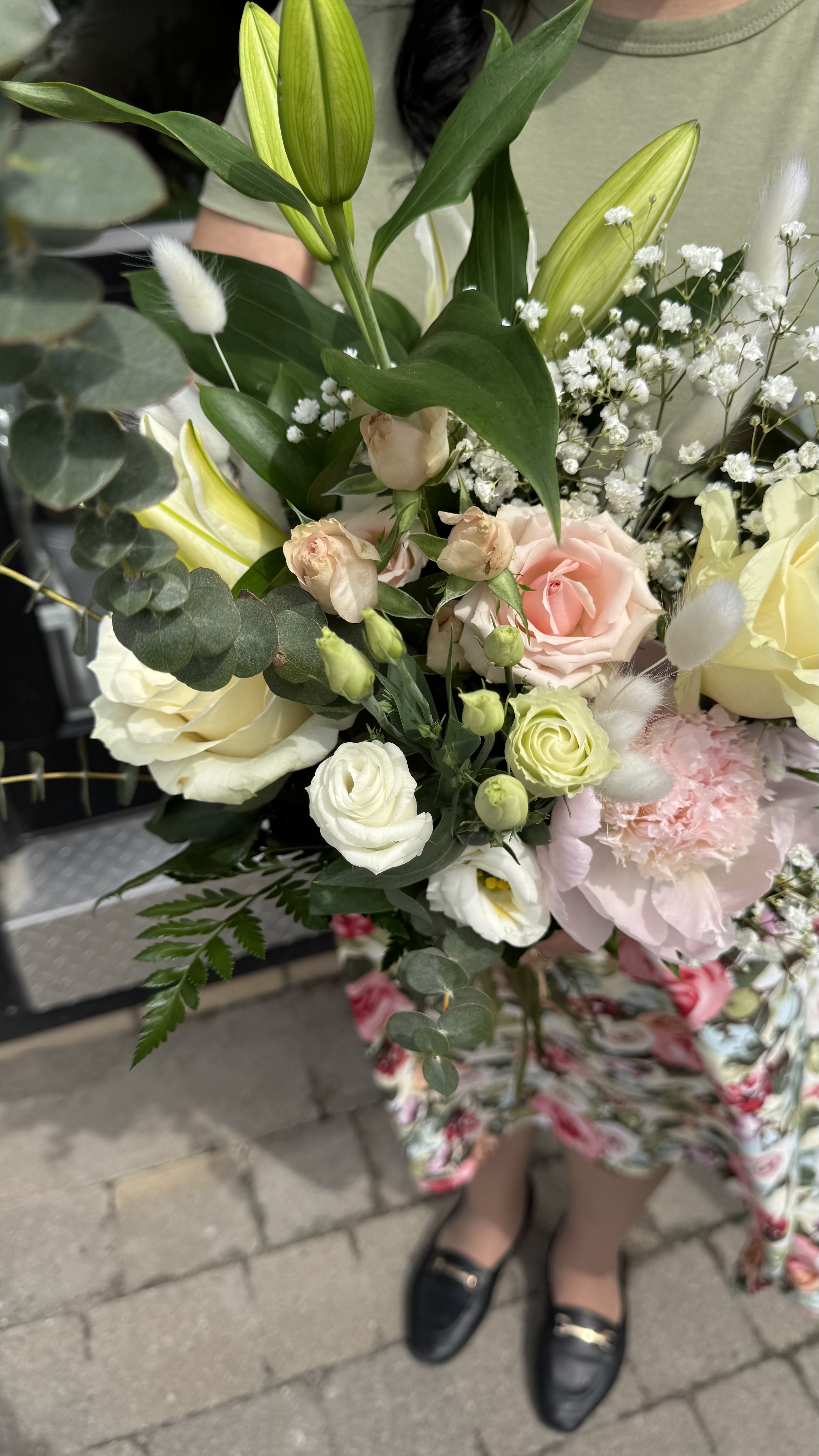 Bouquet tons sur tons. Fleurs au choix de la fleuriste, fleurs en inspiration