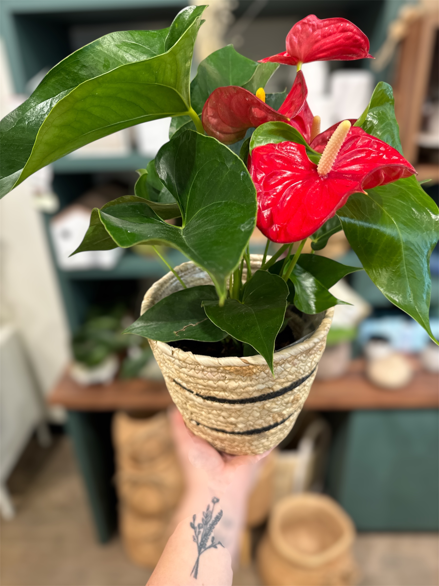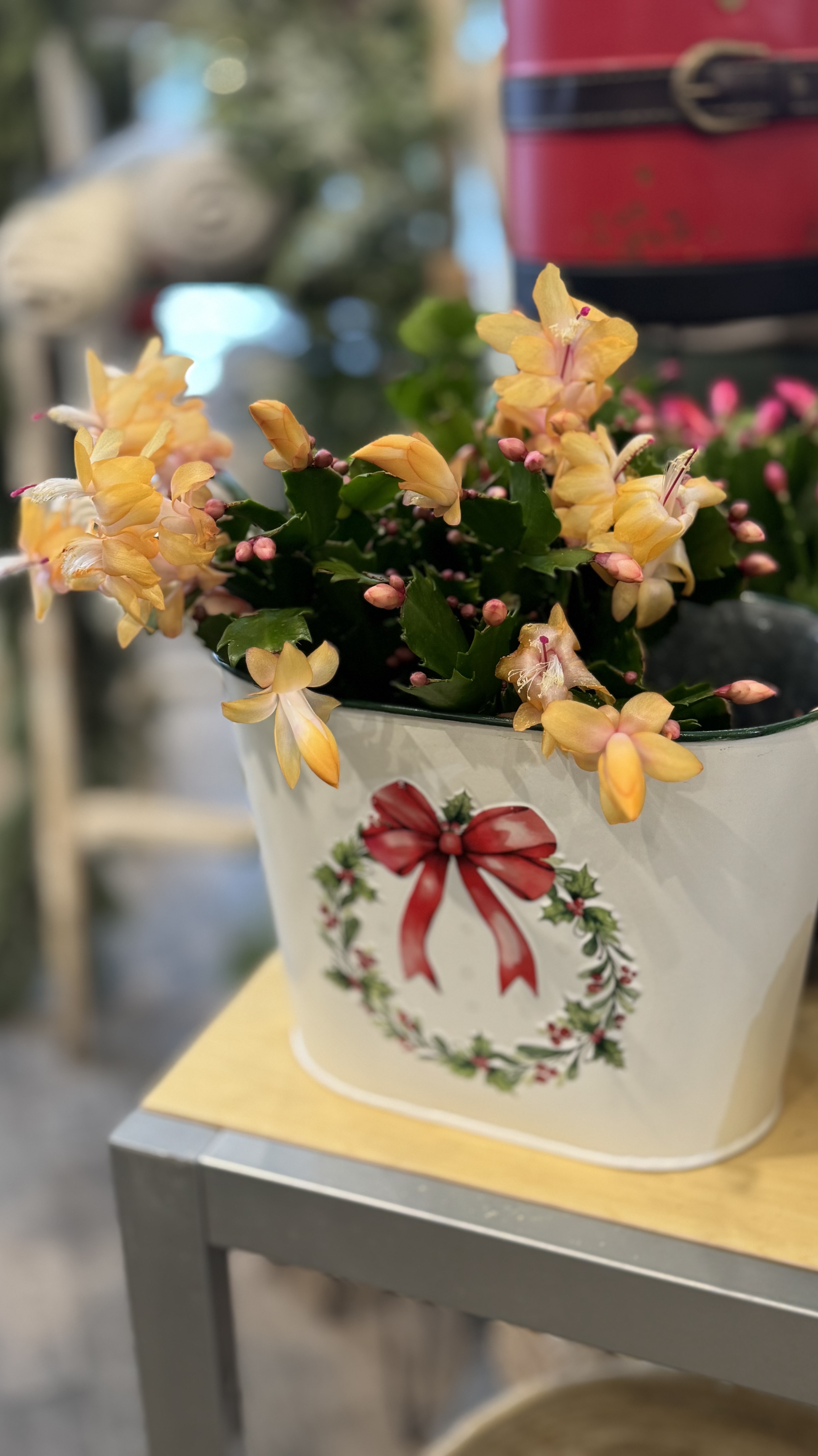 Cactus de Noël 6'' dans panier en métal. Couleur selon disponibilité