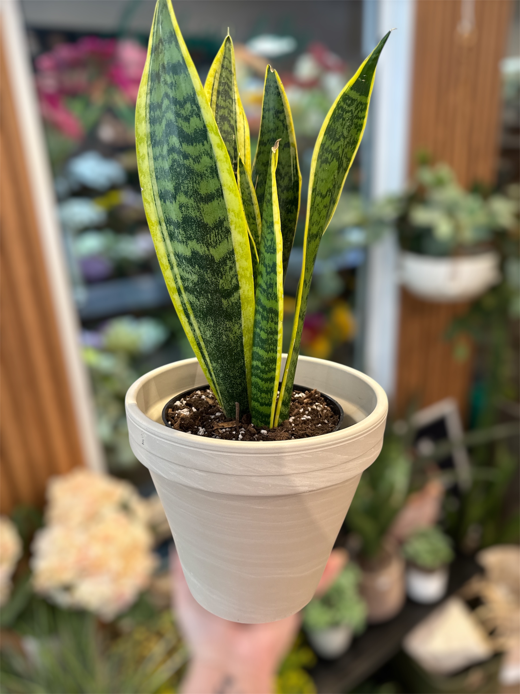 plante Sansevière 6'' de diamètre dans un cache pot en céramique