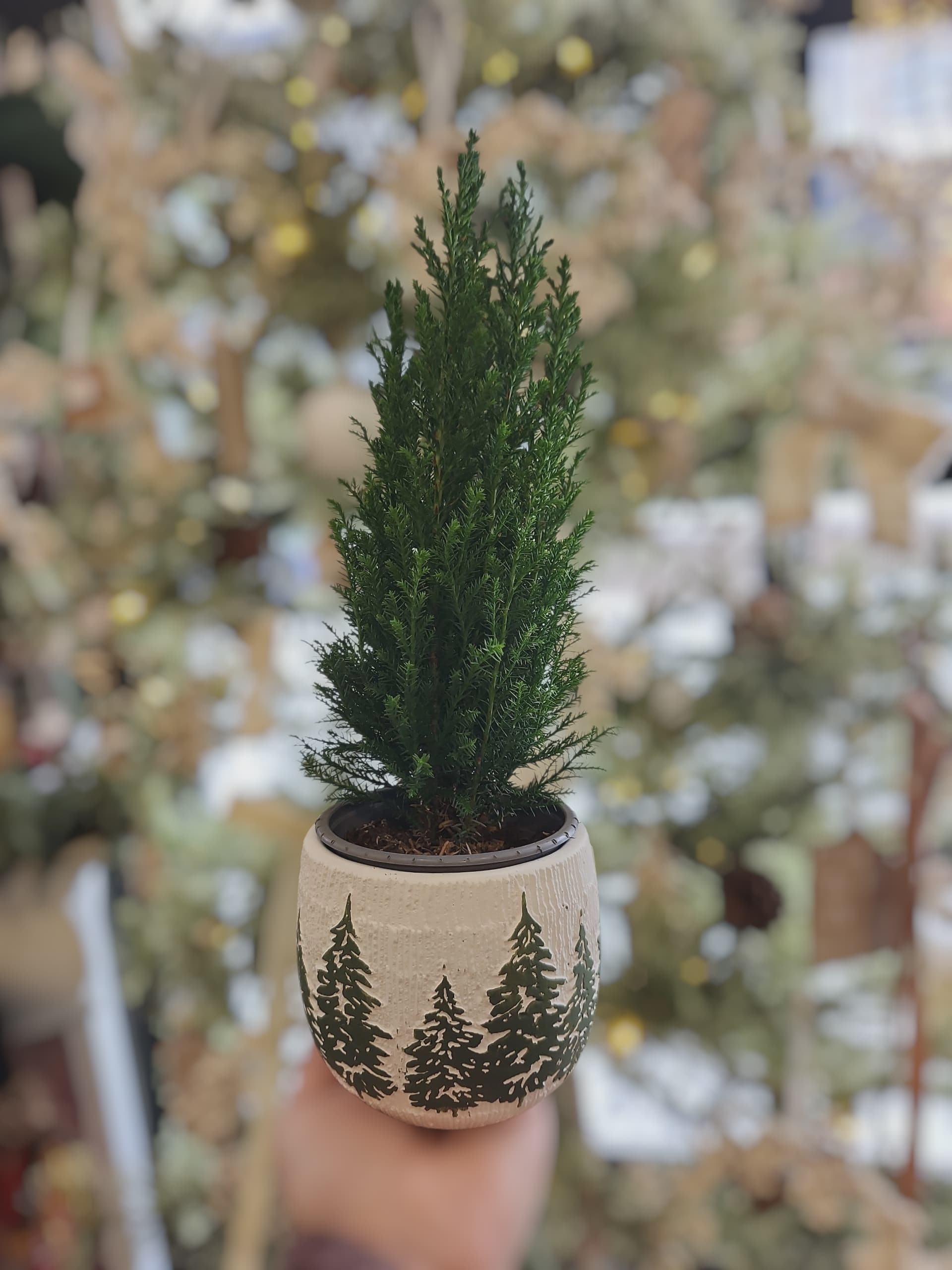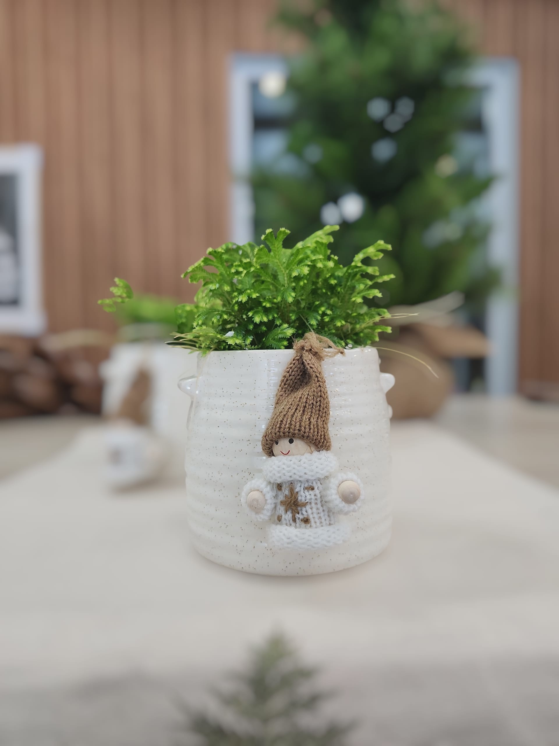 Fougère givré dans un cache pot en céramique 3'' avec ornement