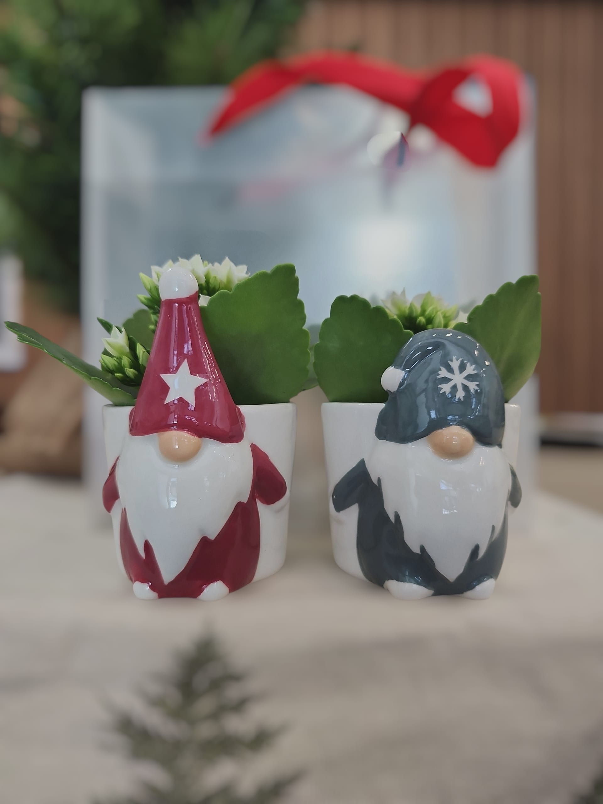 Duo Kalanchoe 2.5'' blanches dans un sac cadeau. Parfait comme cadeau d'hôtesse pour le temps des fêtes