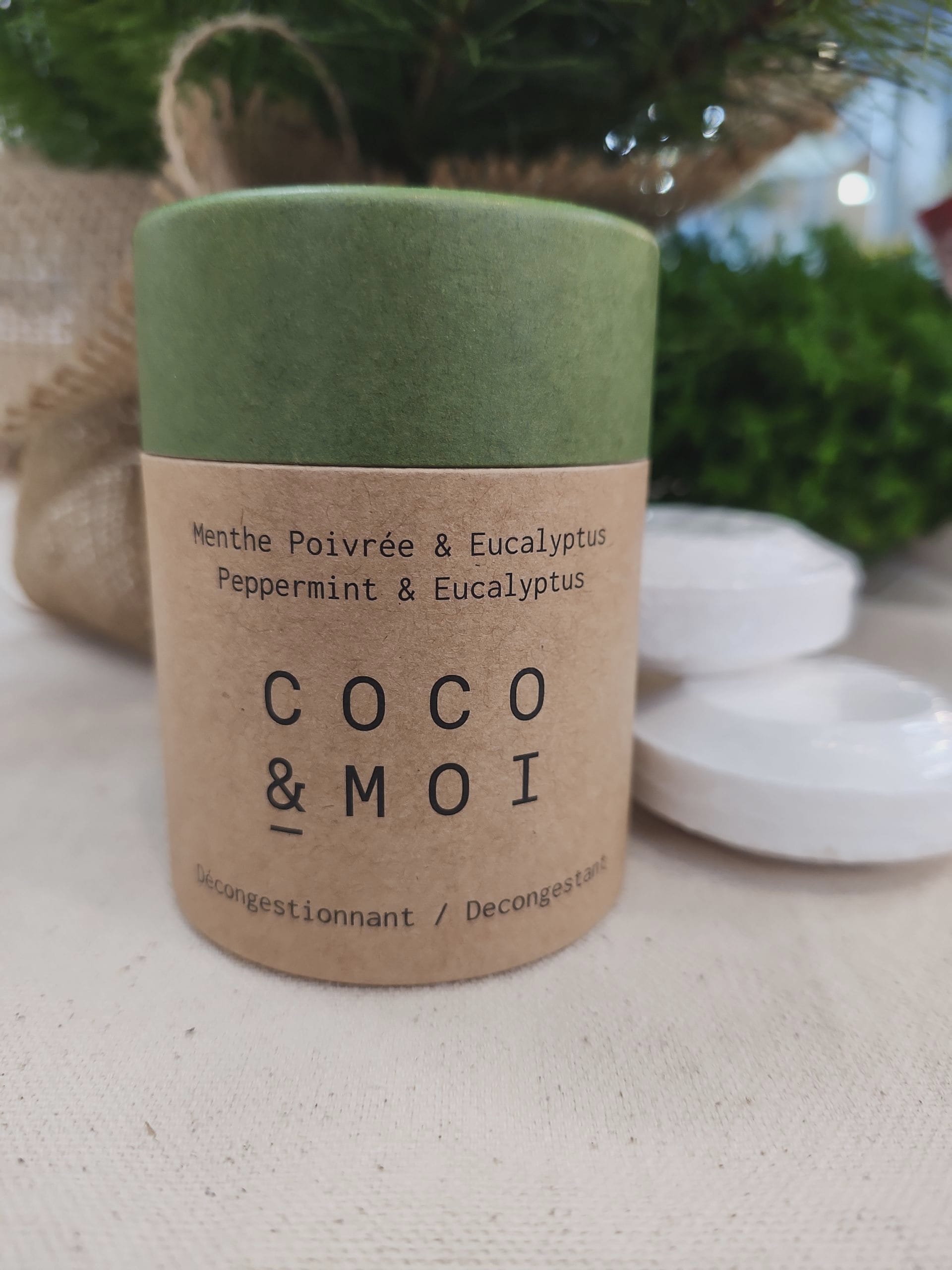 Ensemble cadeau comprenant un cube vapeur pour la douche ainsi qu'une chandelle à l'eucalyptus de 3 oz.