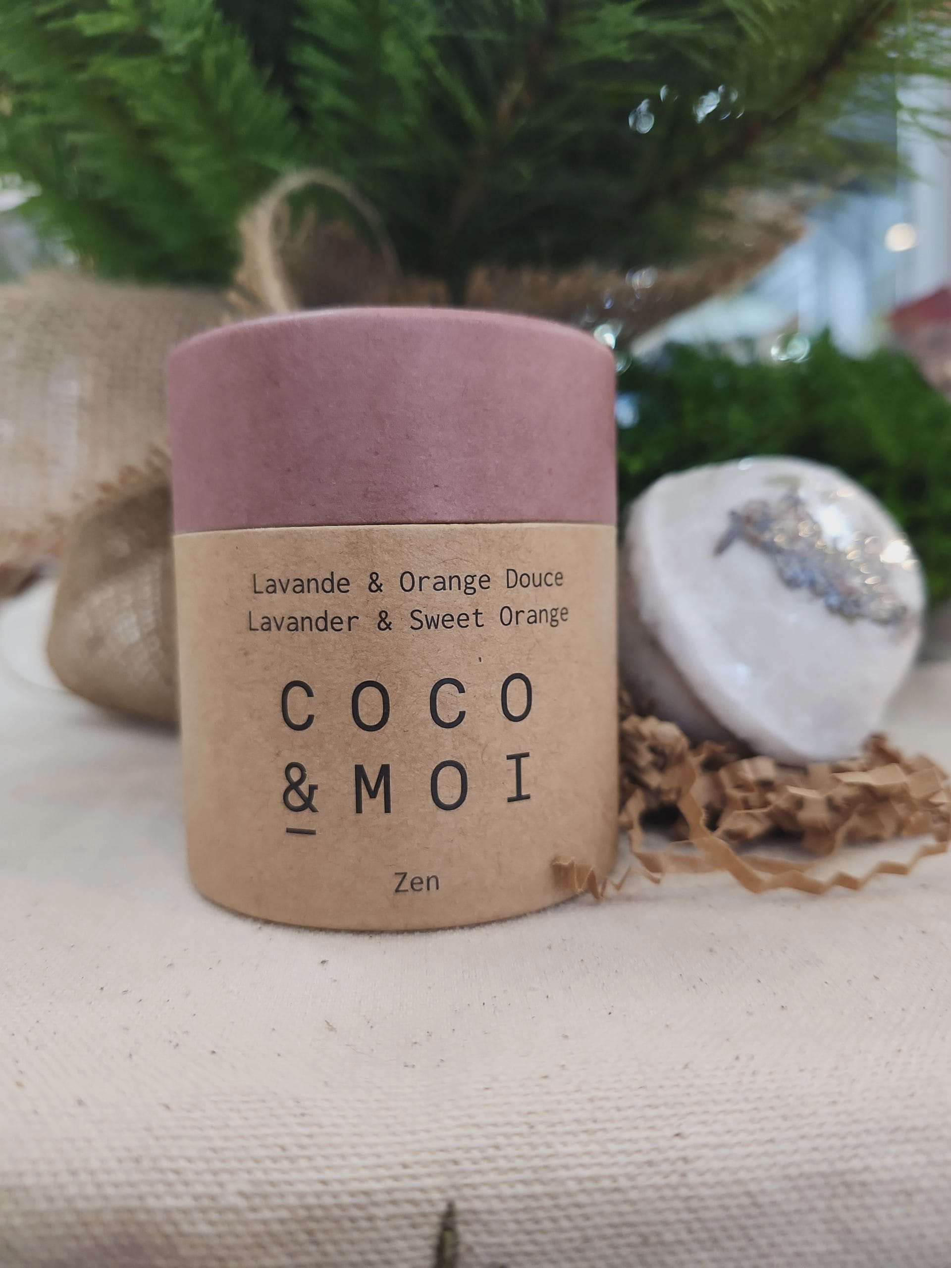 Bougie de soya 110 g et parfum d'intérieur 120 ml de la compagnie moodgie, fait à Montréal