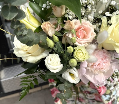 Bouquet tons sur tons. Fleurs au choix de la fleuriste, fleurs en inspiration