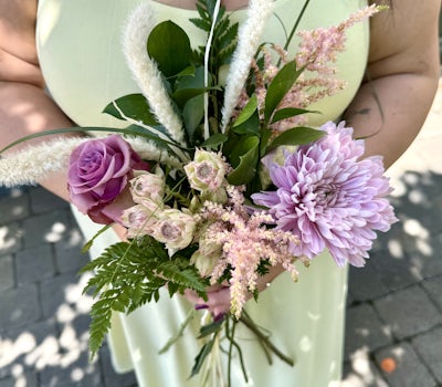 Bouquet du moment composé de fleurs lilas avec une touche de fleurs séchées pour apporter du bonheur et de la douceur dans votre maison