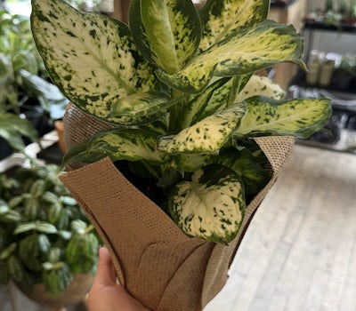 Diffenbechia Amy 6'' dans son cache pot de jute. Spécial du mois de juillet