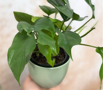 Monstera Ginny 4'' dans son cache pot en céramique vert pâle