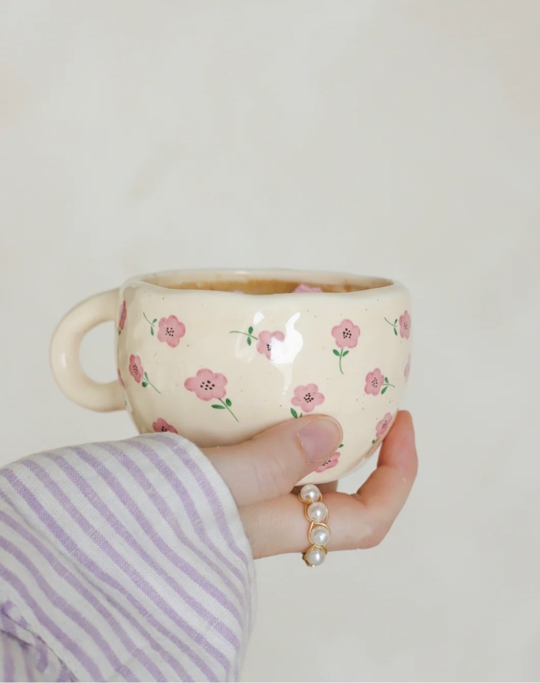 Tasse à café Lily rose avec assiette de marque moi d'abord. Compagnie québécoise