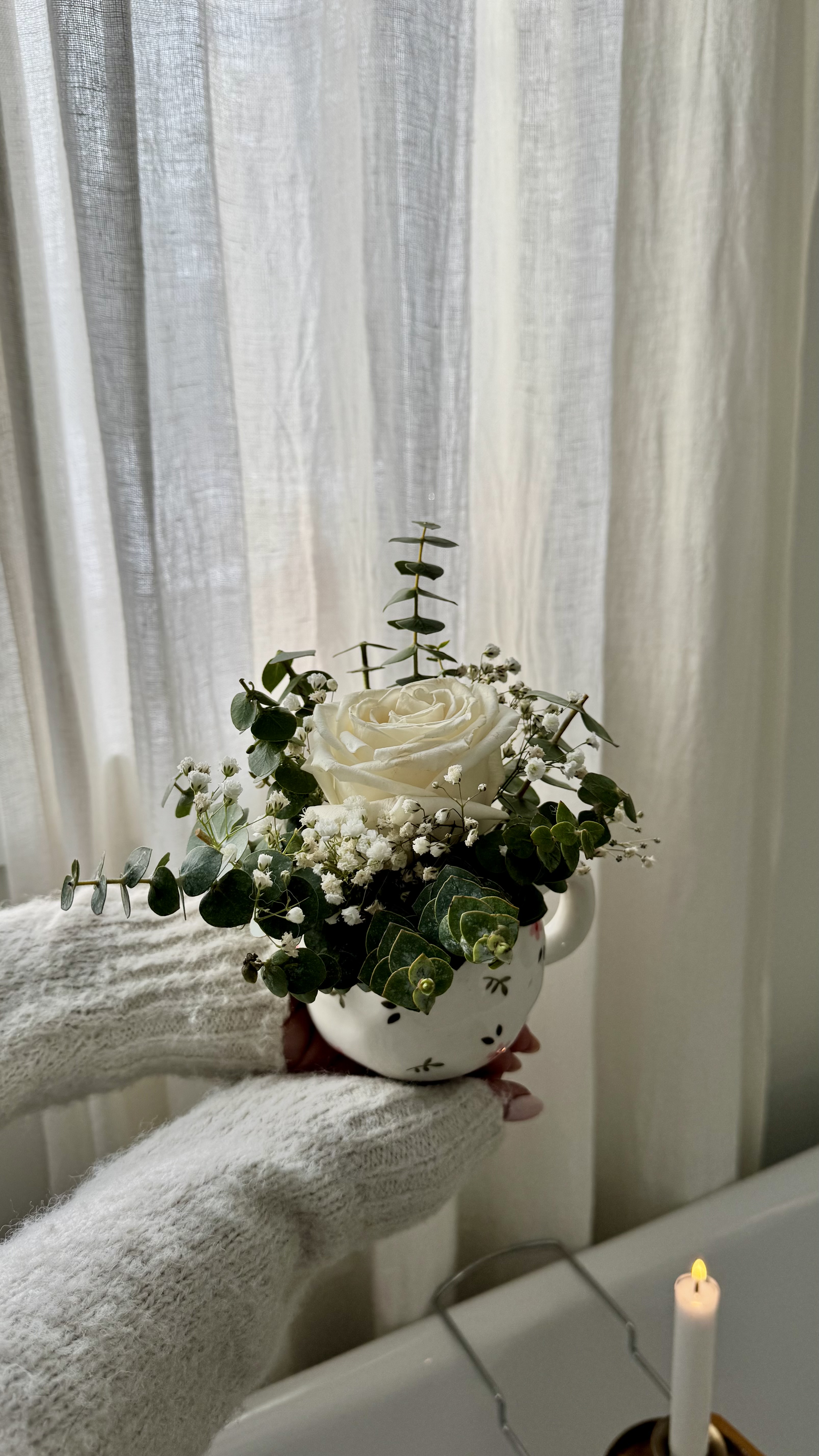 Rosier 6pouces dans un cache pot en céramique blanc